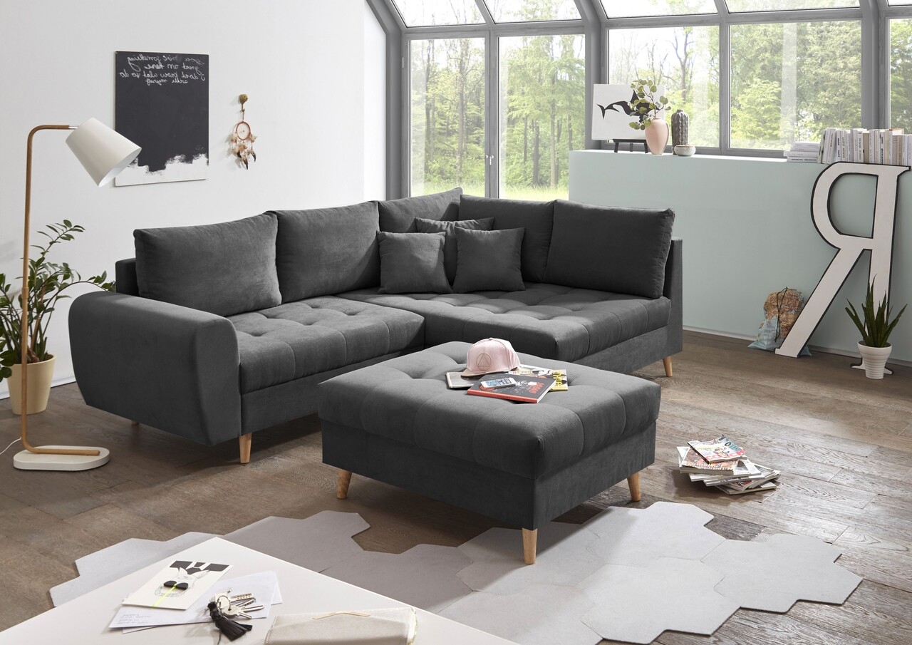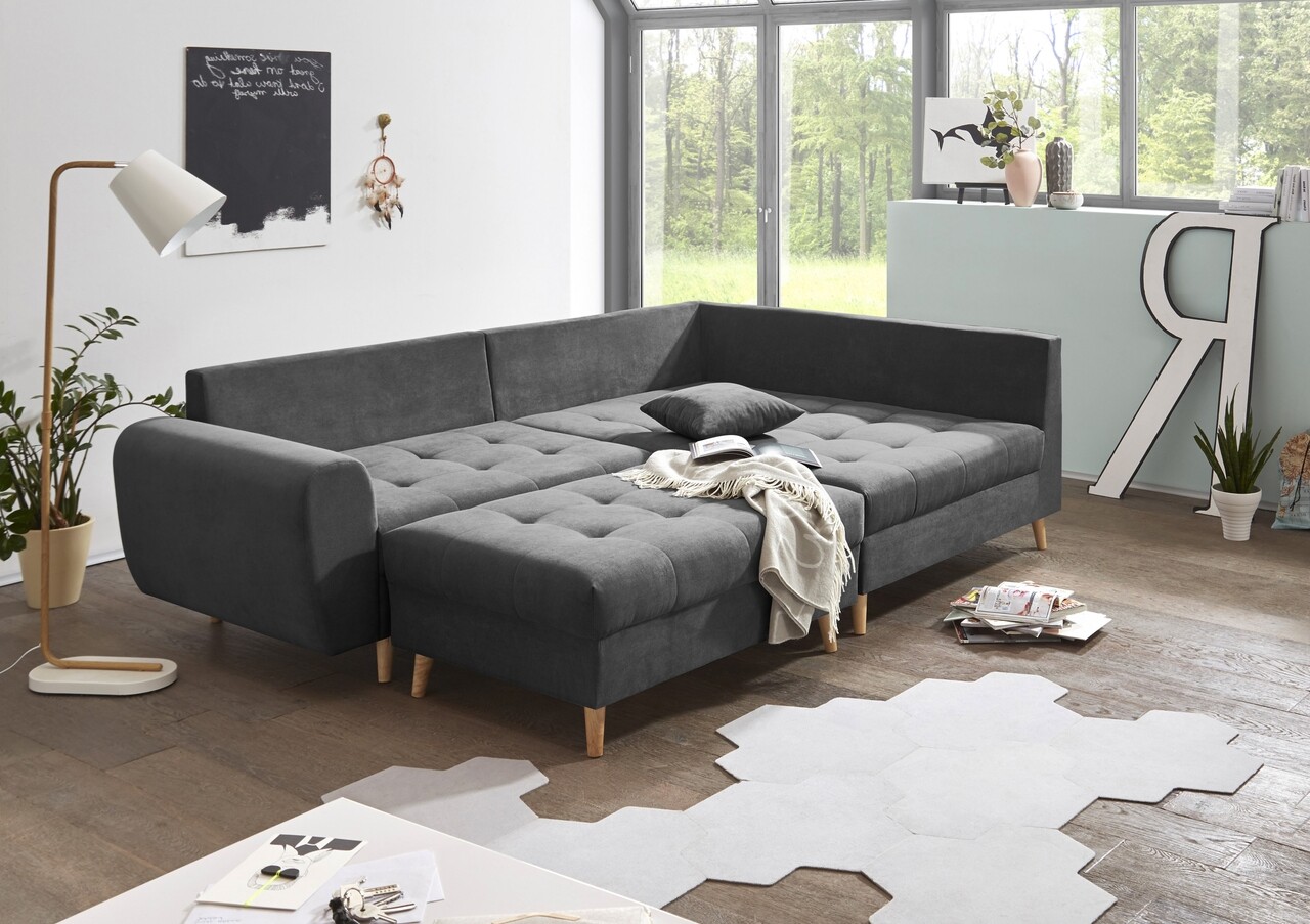 Ъглова рисунка Алиса, 3 места, 249 x 175 x 94 см, ПДЧ/дърво/полиестер, антрацит