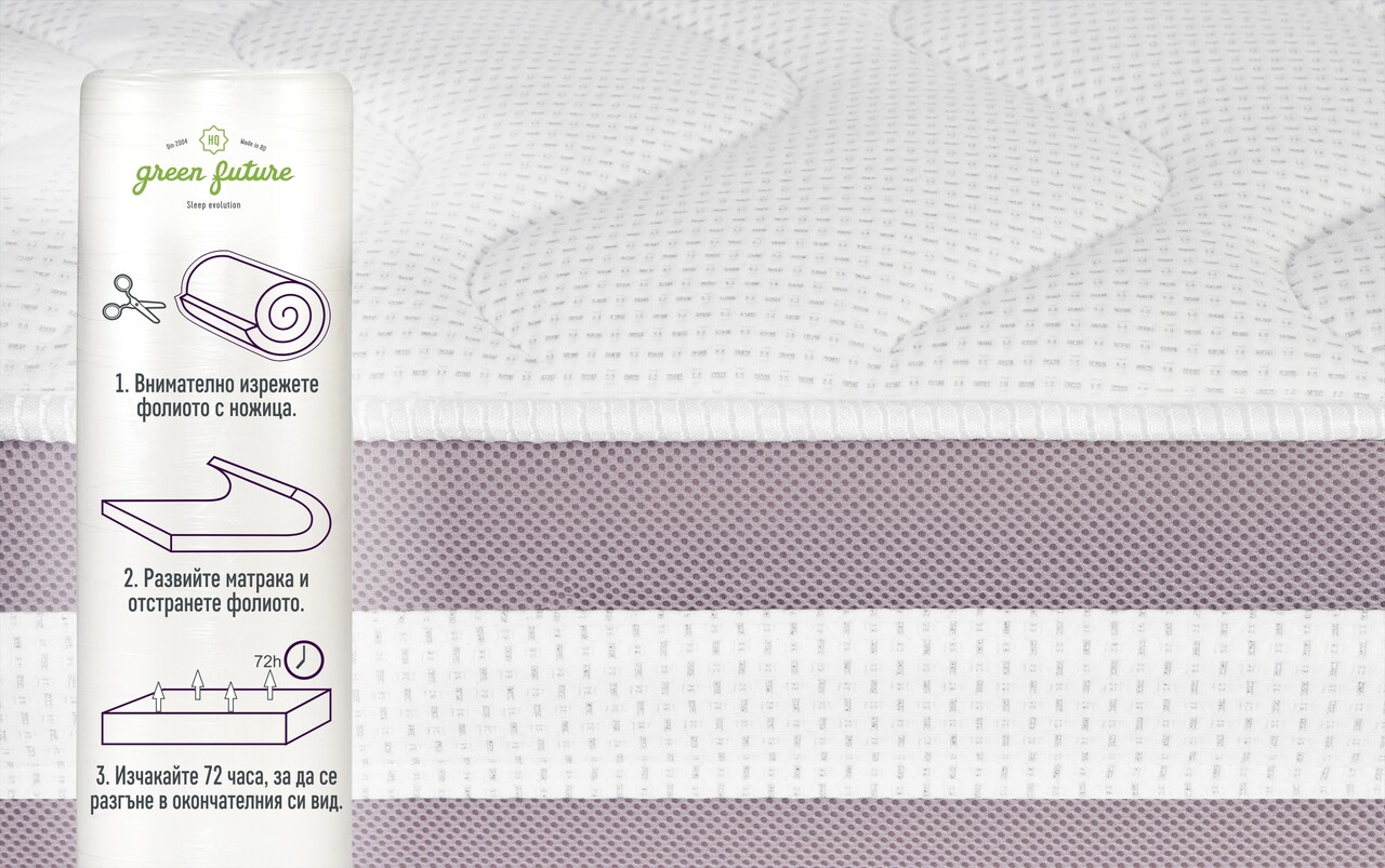 - отворете внимателно защитното фолио, без да използвате нож или други остри предмети ръбове, които биха могли да повредят тъканта на матрака. _x000D_