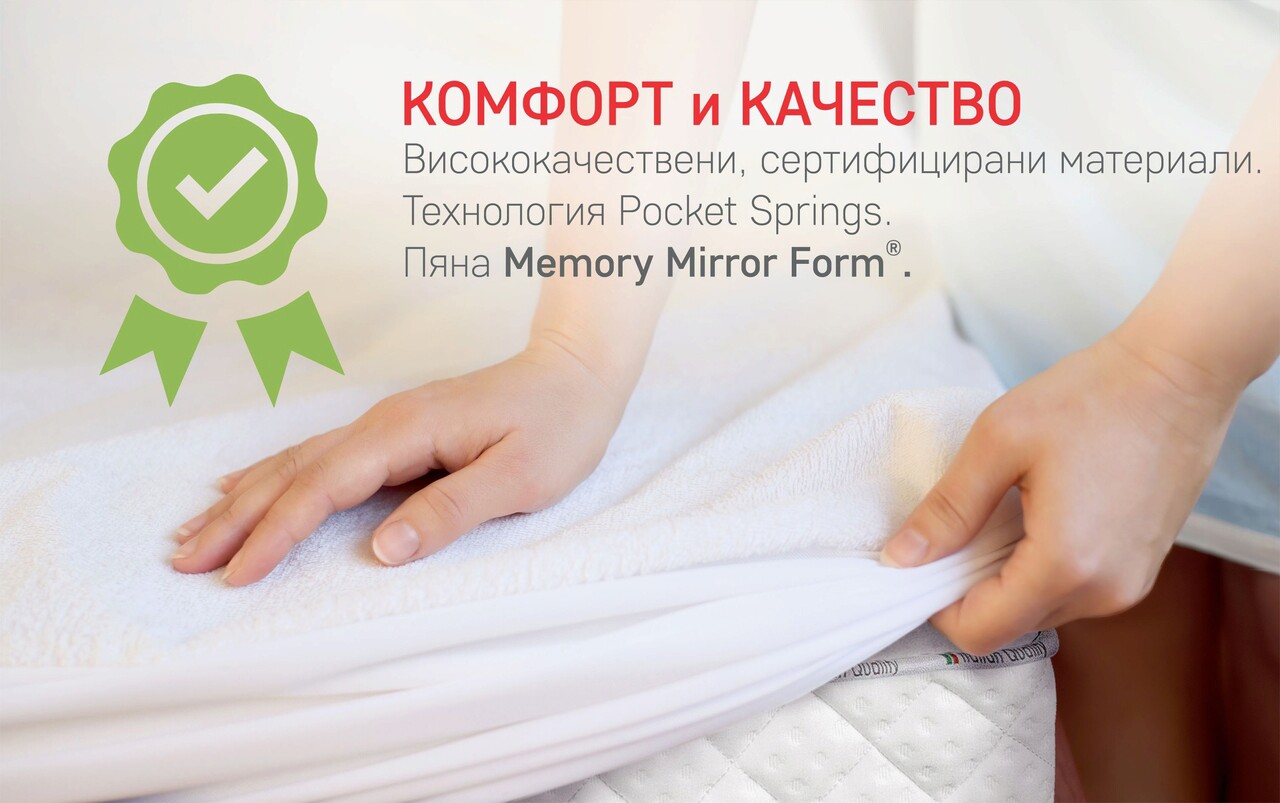 < br />Усъвършенстваната технология на системата Spring 7Z Green Pocket®заедно с тази на слоя Green Therm Memory® осигурете сън, без да възпроизвеждате движенията на партньора си.