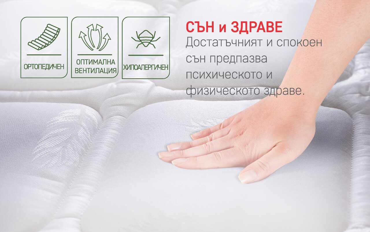 Хипоалергенно покритие с естествени нишки на коприна тя е капитонирана със силиконови влакна и ленени влакна.