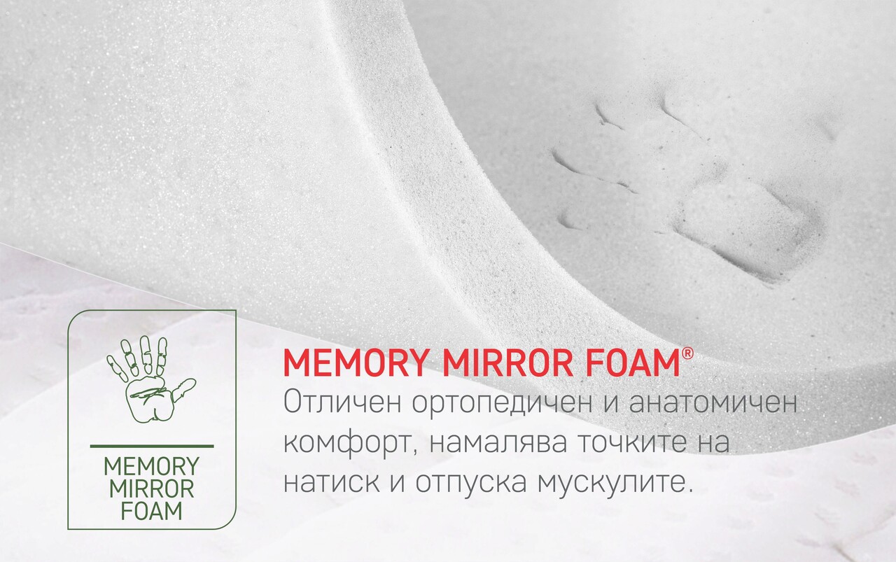 Слоят от пяна Огледална форма на паметта® реагира на топлината на тялото и я оформя, като елиминира точките на натиск по време на сън, за да отпусне мускулите и да осигури правилно кръвообращение.
