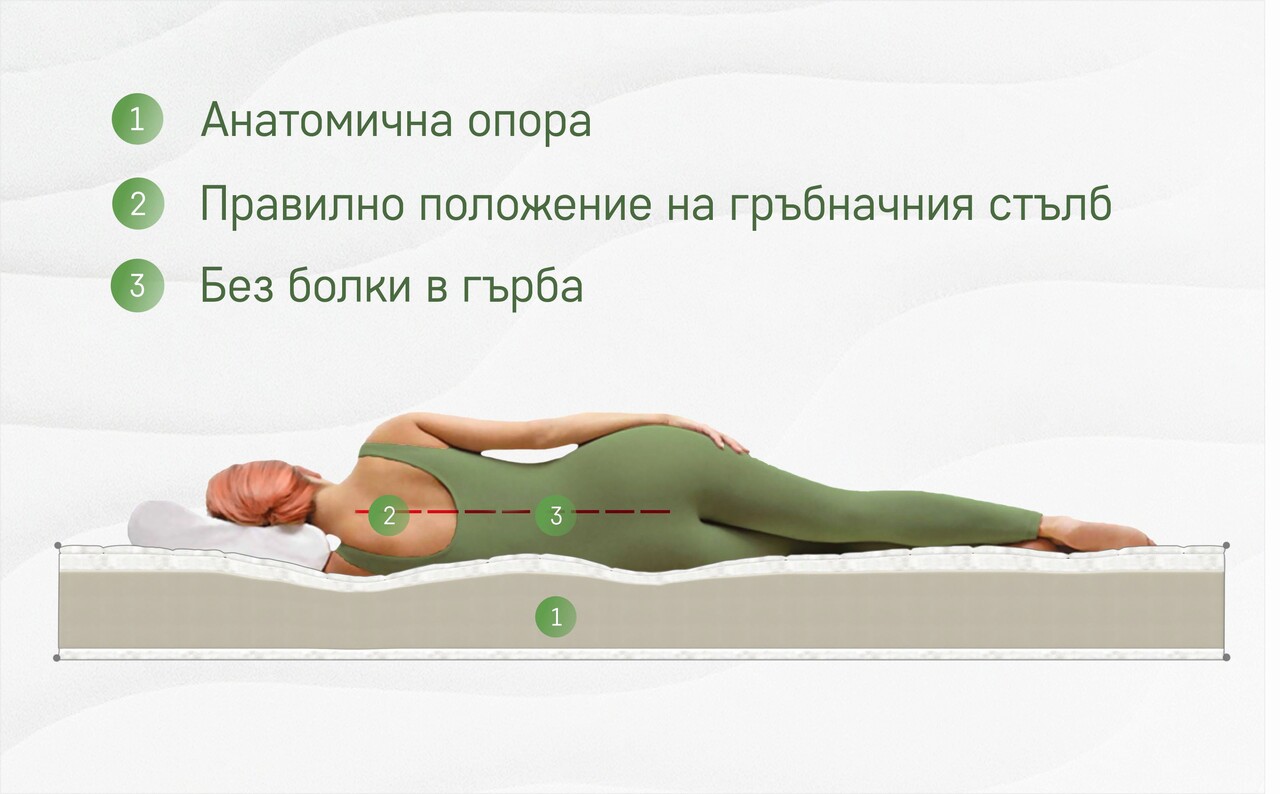 Това е матрак, който се препоръчва за всички позиции на спане : на гърба, настрани и на корема.