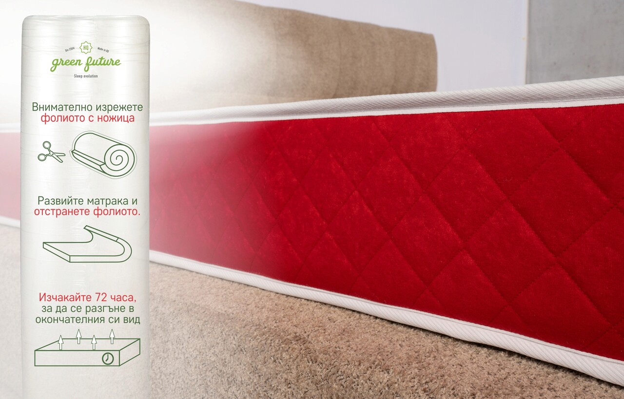 - Внимателно свалете защитното фолио, без да използвате нож или други остри предмети, които биха могли да повредят материята на матрака.