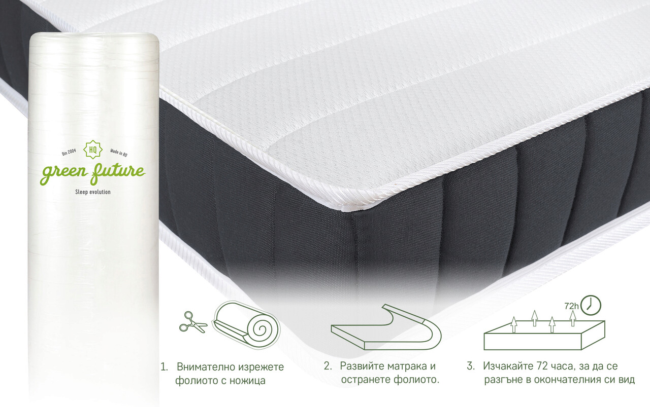 Матрака е вакуумиран и навит. Прочетете внимателно инструкциите за работа и разопаковане.