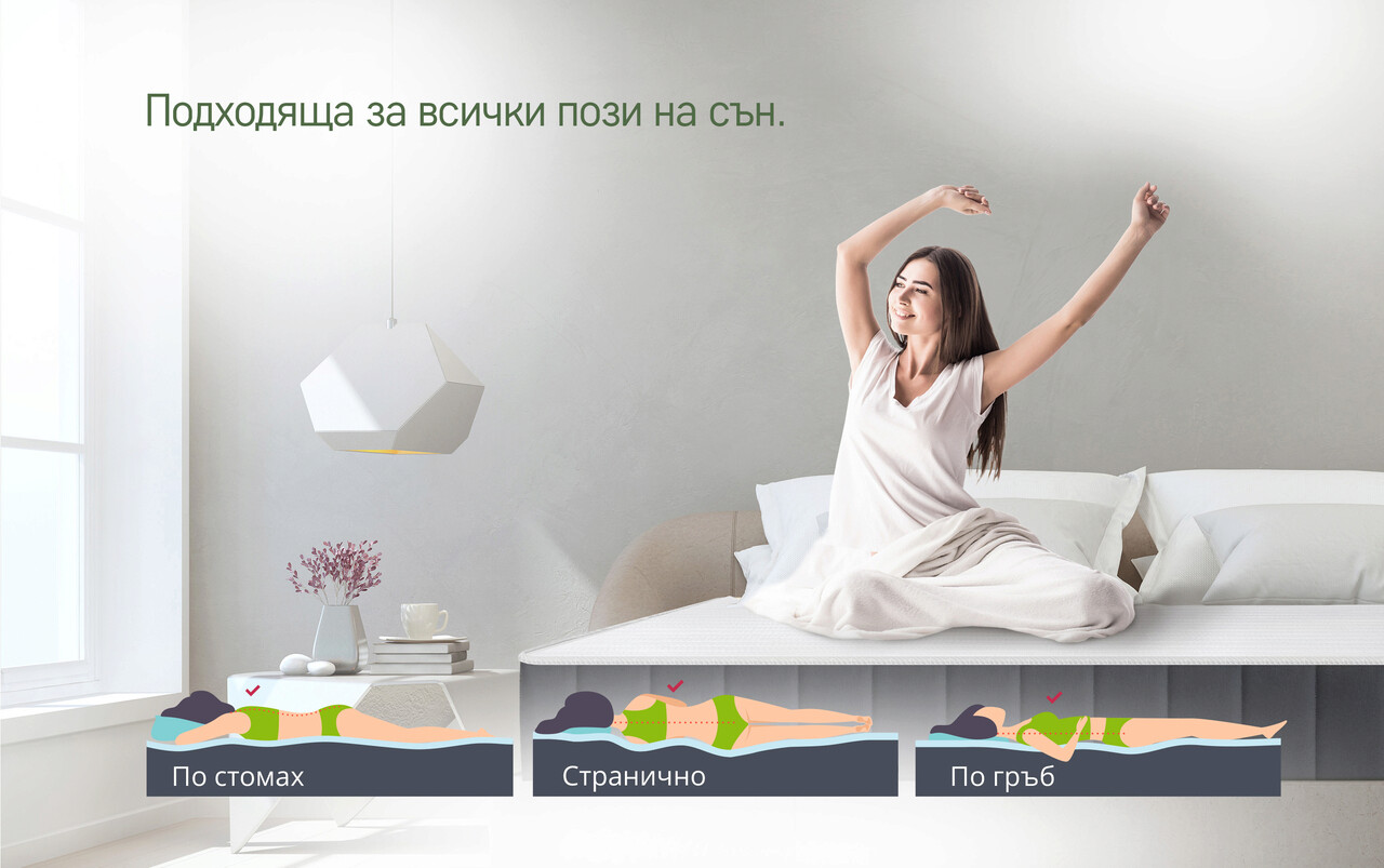 МатракSERENA DUAL CONFORT е матрак препоръчва се за всички позиции за сън: по гръб, настрани и по корем.