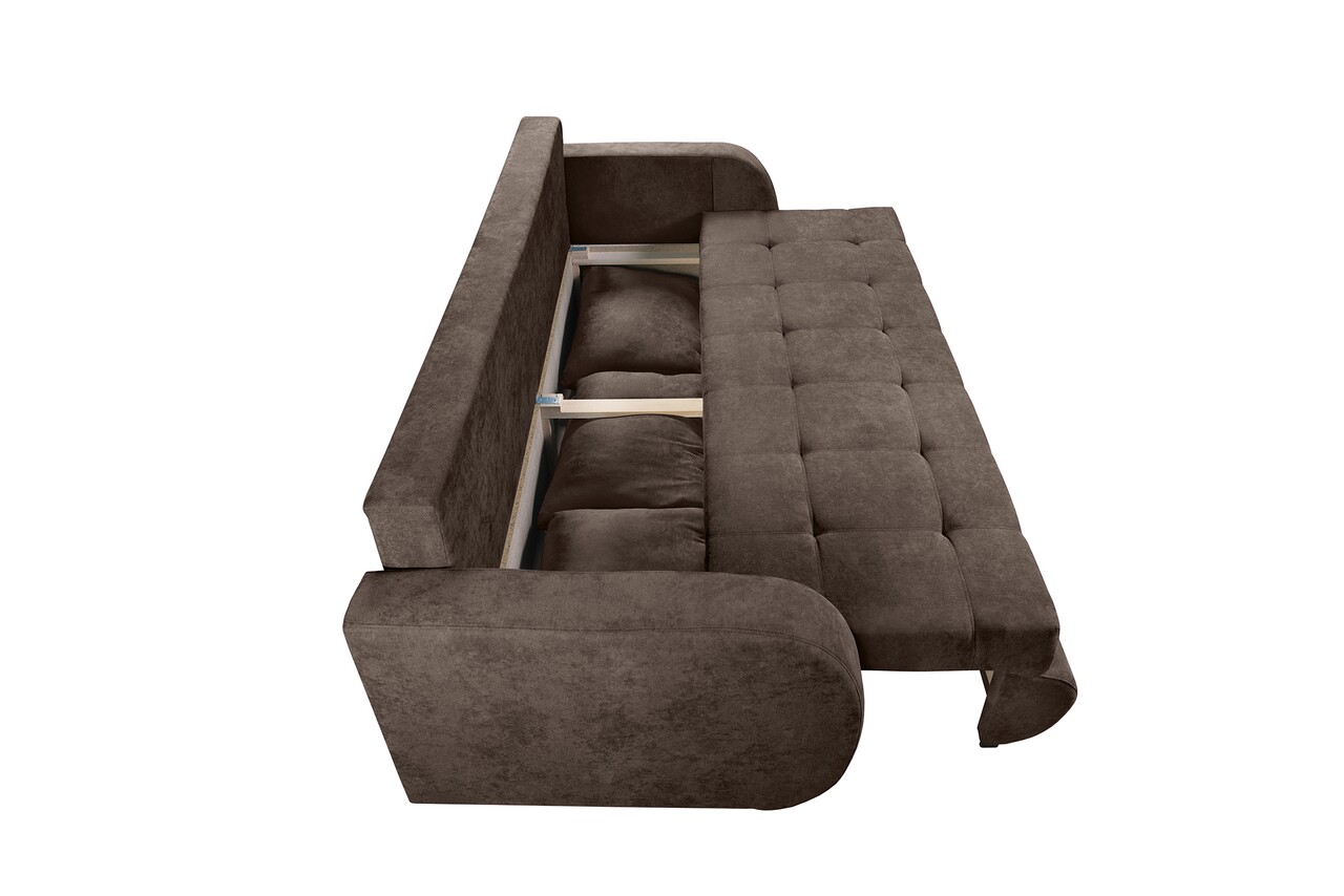 Разтегателният диван Siena Brown с класическата си форма подчертава формалната простота на изключително детайлен дизайн.