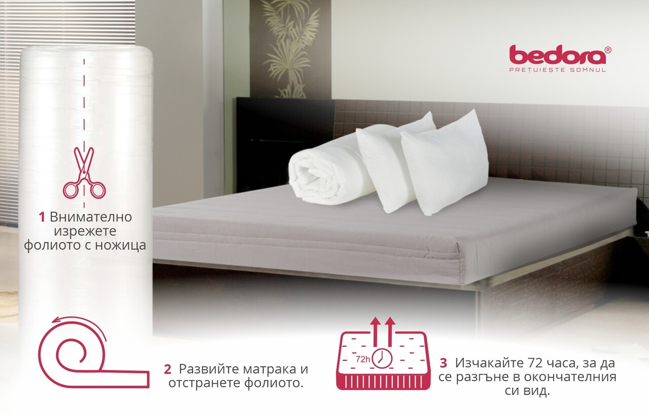 Пакетът Bedora Combo включва три основни продукта, необходими за сън: матрак, две възглавници и юрган. Структурата на матрака е изградена от гъвкав слой от 14 см полиуретанова пяна, която осигурява естествена позиция на гръбнака по време на сън. За правилна хигиена калъфката от естествени памучни влакна може да се сваля.