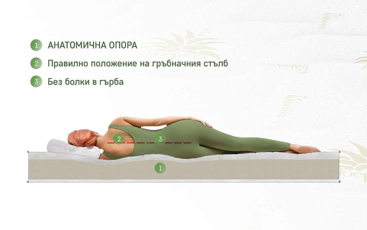- Препоръчва се за всички позиции на спане: по гръб, отстрани и по корема