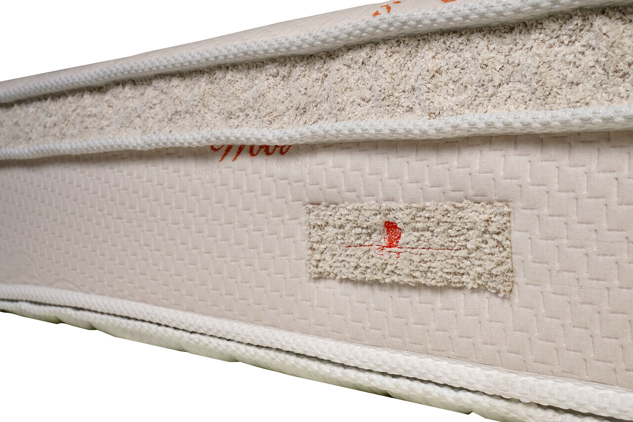 Калъфът на матрака, изработен от висококачествена обемна тъкан, е обогатен с влакна от мериносова вълна, които придават комфортно и естествено усещане. Прошивката, която съчетава мериносова вълна със силиконови влакна, гарантира постоянен топлинен комфорт и оптимална вентилация, независимо от сезона. Освен това матракът има две страни с различни нива на твърдост, за да можете да адаптирате перфектния сън към нуждите си: по-мека страна с мемори пяна Mirror Foam® и суперортопедична страна със супер еластична пяна Green Form HD® за идеална опора.